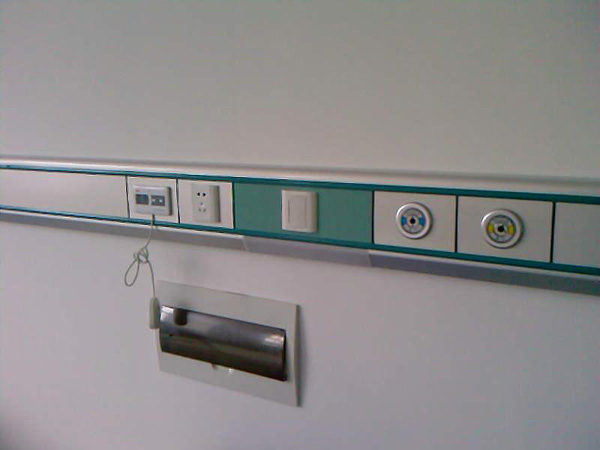 設(shè)備帶固定在病房床頭上方的墻壁上,用來安裝電源插座、呼叫按鈕、電源開關(guān)、中心供氧及負(fù)壓吸引等系統(tǒng)的氣體閥等設(shè)備,另外也可固定其它一些醫(yī)療設(shè)備,如輸液裝置、其它報(bào)警裝置等。